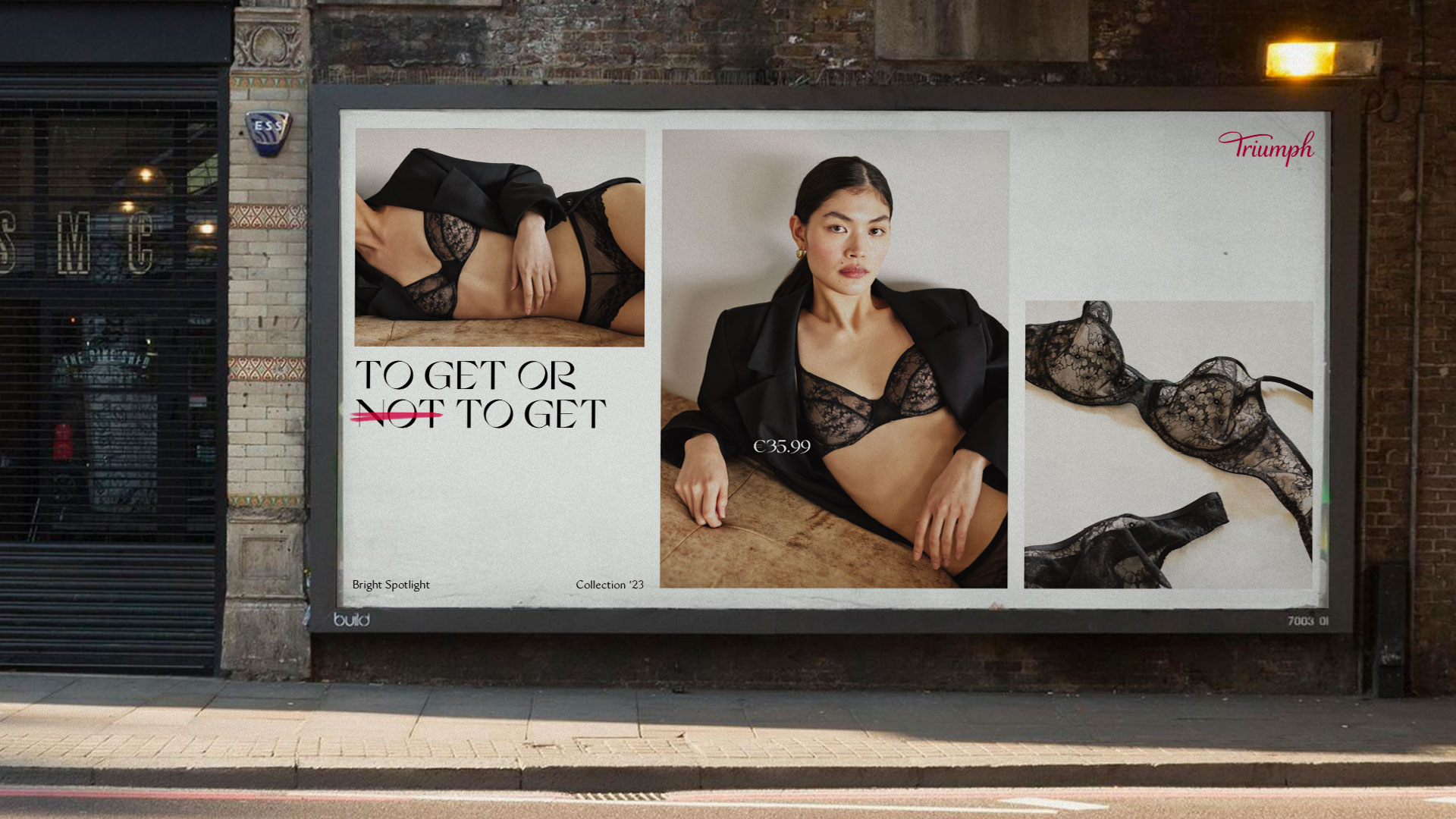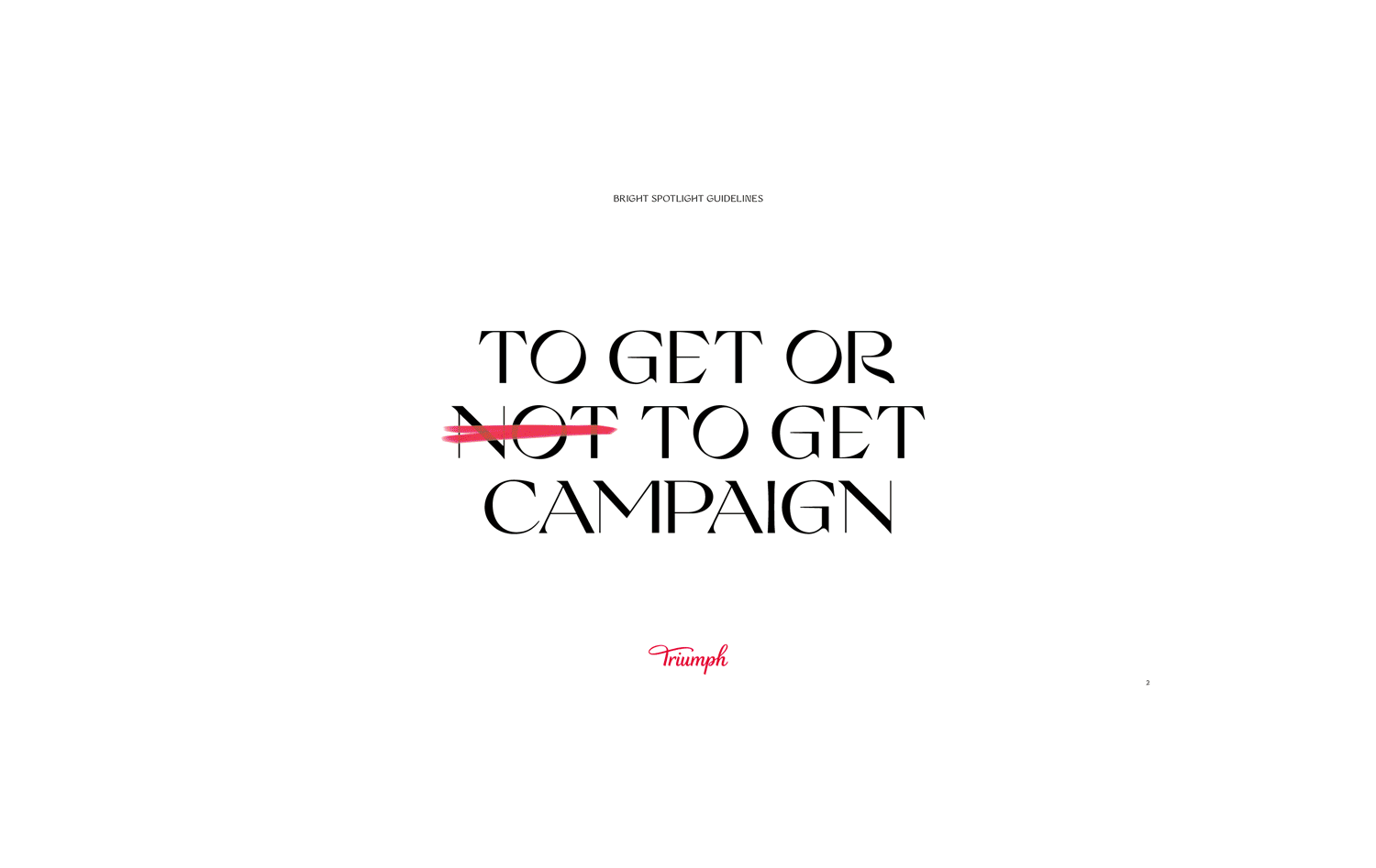 Triumph's Bright Spotlight bra is here to help women with their inner discussion of “To get, or not to get”, for a ‘just get it’ price and the premium Triumph look and feel. The inner thoughts are illustrated with a customized handwritten font and flowy dynamic lines.